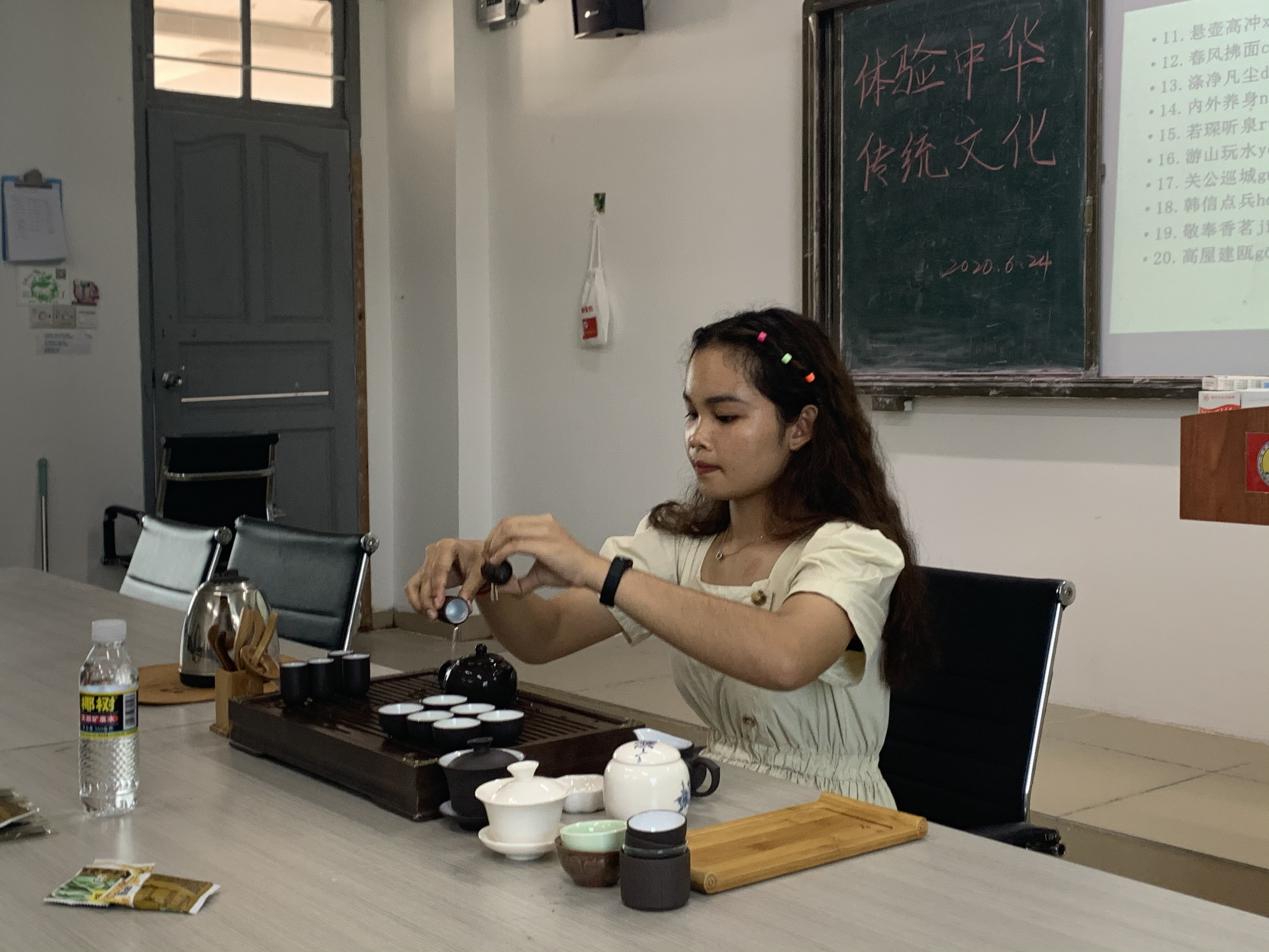 图为来自柬埔寨的女学生独自表演中国茶艺