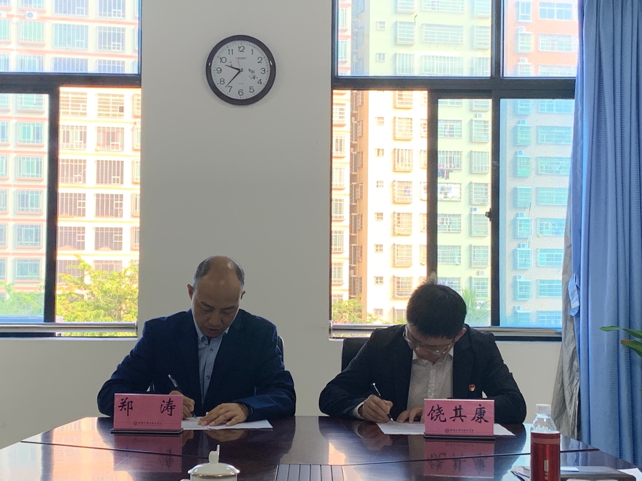 首先,饶主任欢迎三位的到来,并简要介绍了我院建校和专业开设等情况、以及海南自贸区(港)建设发展的情况。接着,重庆交通大学人文学院副院长郑涛,介绍了重庆交通大学的建校办学理念,指出重庆交通大学是一所交通特色鲜明、以工为主的多科性大学。汉语言文化系主任唐娟则为我们介绍了汉语言文化系相关专业的建设,以及本次与我院合作成立汉教实践基地的缘由。最后双方就各自问题沟通交谈,拟签订实习基地合作建设协议,并举行挂牌仪式。