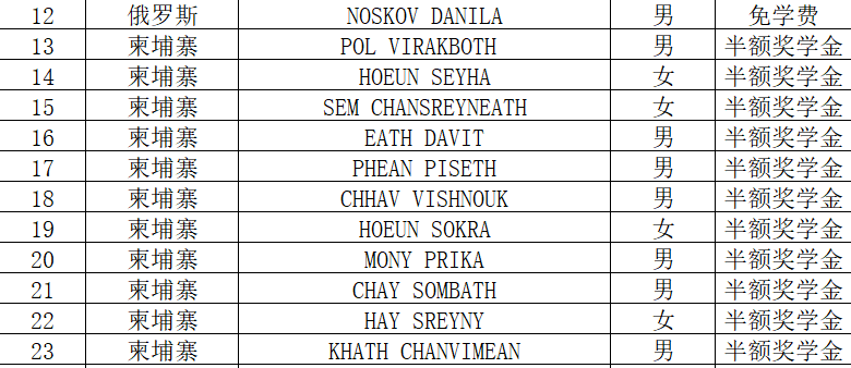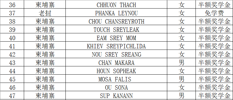 beat365官方网站2019年下半年国际学生招生工作已结束,现公布录取名单:
