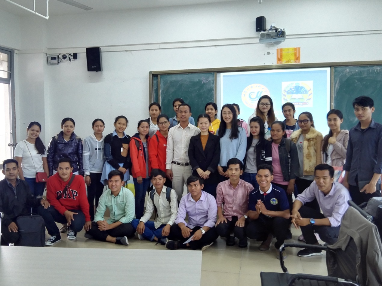 1月4日,2018柬埔寨交流团在我院综合楼BE503举行开班仪式。柬埔寨教师CHOEM SOVANNARA,我院教师张珍妮、李昌燕参加了开班仪式。