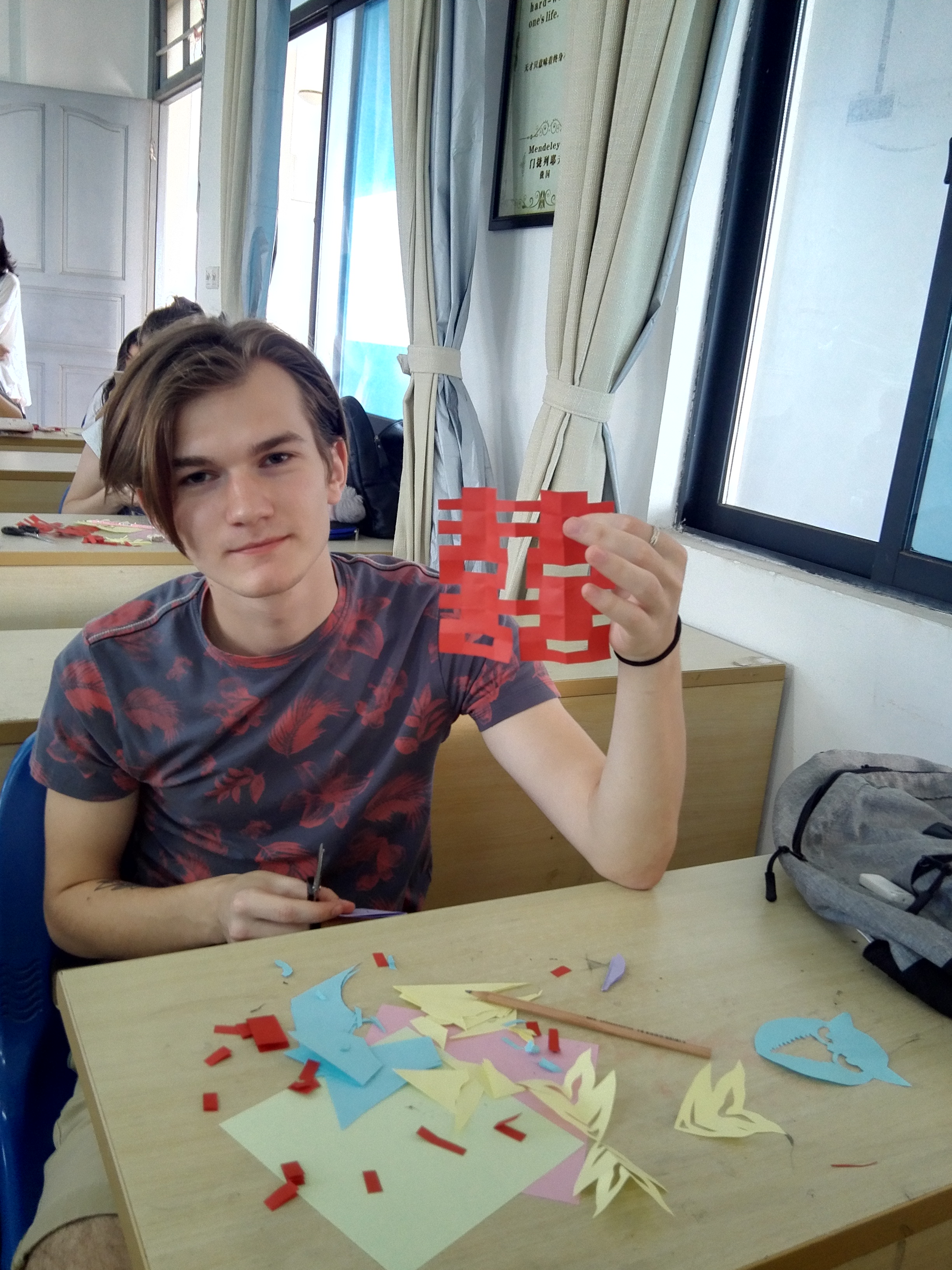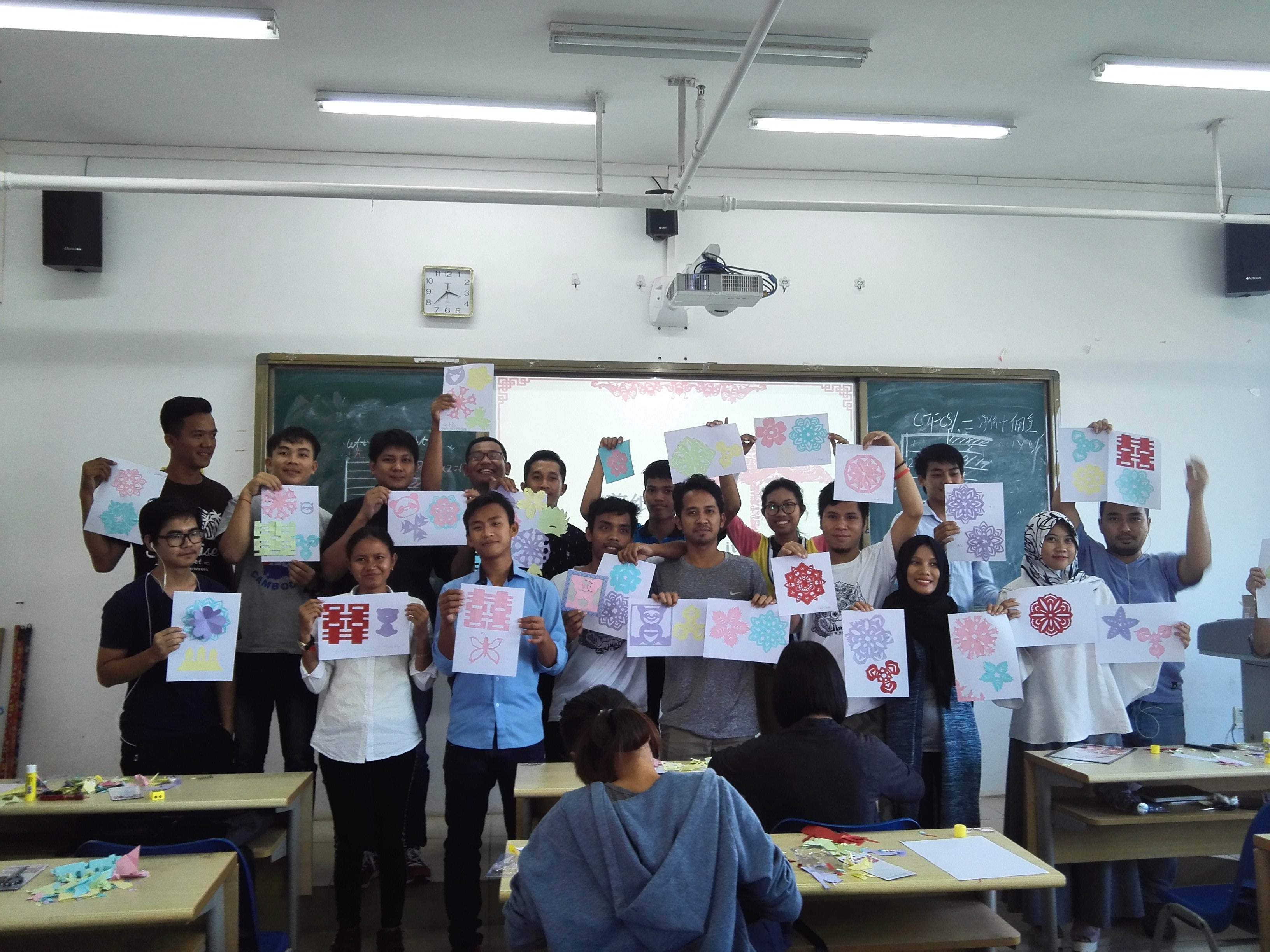愉快而短暂的剪纸时光就这么过去了,留学生们在寓教于乐的剪纸课中既提高了动手能力、又进一步了解了博大精深的中华文化,为他们的留学之旅增添了一笔宝贵的回忆。