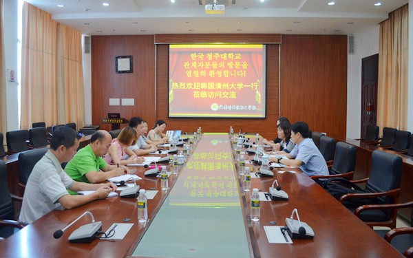 座谈中,杨学前副院长对清州大学客人的来访表示欢迎,并对我院从发展历史、办学特色、专业建设、办学成果等方面做了简要介绍,重点介绍了我院外语教学的优势和成果,指出希望借此次交流座谈为契机,打开双方合作局面。 陈祯美处长在发言时对我院的发展成绩表示赞赏。在介绍了清州大学的基本情况后,她表达了对与我院合作的期望和信心,希望此次来访,能够与我院建立合作,共同促进双方发展。 会上,双方与会人员还围绕教师互访、学生培养、科研项目合作等方面展开深入探讨和交流。会谈结束后,双方还互赠了礼物。 清州大学创建于1946年11月,目前该校有在校生12000多名,60多个专业,产业设计、太阳光专业位居韩国第一,电影专业排名韩国第三。清州大学是一所全球化的大学,有来自20个国家500多名留学生就读于该校,现在该校已与世界160多所大学签署了友好合作协议,并与88所中国大学签署了友好合作协议,目前有3600名中国留学生毕业于该校。