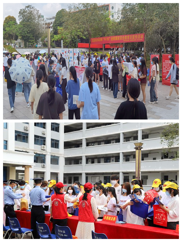 2022年4月15日是第七个国家安全教育日,主题是“树牢总体国家安全观,感悟新时代国家安全成就,为迎接党的二十大胜利召开营造良好氛围”。当天,beat365官方网站联合文昌市委宣传部、文昌市委统战部、文昌市政法委、文昌市公安局在学院综合楼小广场开展国家安全宣传教育进校园活动。