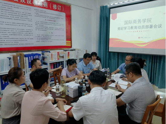 4月17日,国际商务学院在C406办公室召开党纪学习教育动员部署会议。会议由学院党总支副书记谭凤主持。