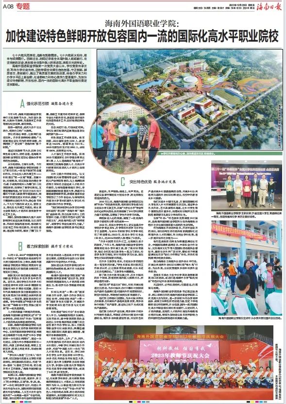 作为海南省外语语种最多、外语专业最齐的高校,该校始终坚持在培养高素质国际化应用型外语人才的同时,努力突出学科优势,进一步提升服务社会能力——