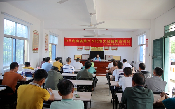 佴建乔从海南省第八次党代会总体情况、重点内容等方面,结合祖坡村乡村振兴工作实际进行宣讲。宣讲中,她表示,自2016年起至今,我院围绕“产业振兴、人才振兴、文化振兴、生态振兴、组织振兴”五大任务,全力做好祖坡村的脱贫攻坚和乡村振兴工作,取得了实实在在的成效。为不断巩固拓展祖坡村整村全员脱贫成果、扎实推进乡村振兴工作,学院将继续在党建工作、产业开发、教育帮扶、基础设施建设等方面进行帮扶。她希望,全体乡村振兴干部在习近平总书记考察海南时的重要讲话精神指引下,深入学习贯彻省第八次党代会精神,以“功成不必在我”的精神境界和“功成必定有我”的历史担当,奋力推进海南自由贸易港建设行稳致远,开创全面推进乡村振兴新局面,以实际行动迎接党的二十大胜利召开!