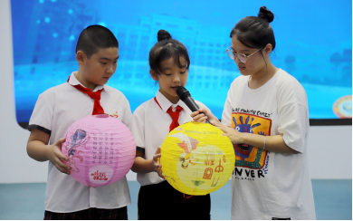 活动现场,志愿者叶芃、黄莹首先为现场同学们讲述中秋节的由来,并以互动的方式,与同学们共同讨论中秋节的传统习俗,现场气氛热烈。活动中,还设置了朗诵、书法环节,志愿者吴苡侨、吴何毓霞带领同学们一起朗诵中秋韵诗——《水调歌头》,洪昊鹏为大家手书《水调歌头》的诗词,表达对同学们的中秋祝愿。同学们在朗诵与书法中共同领略中华优秀传统文化的丰富内涵。