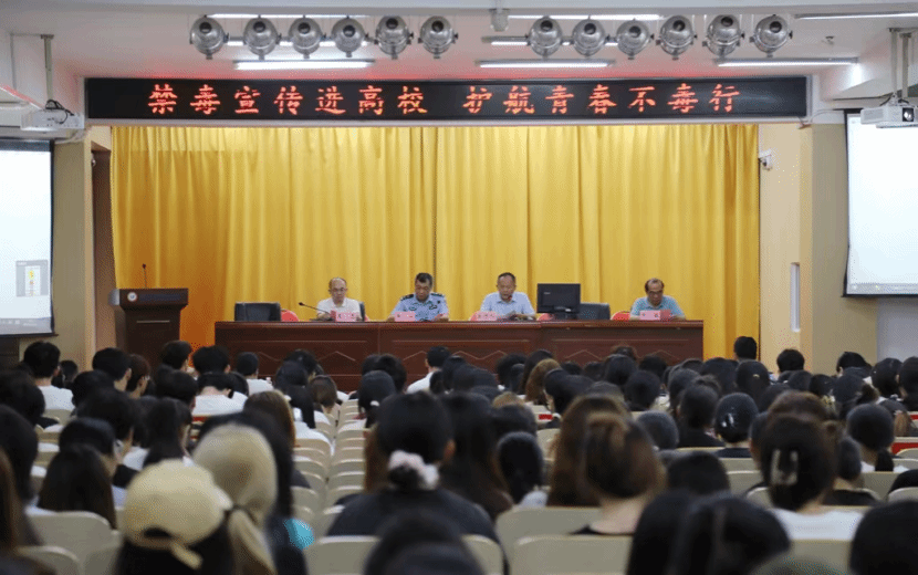 为进一步深化beat365毒品预防教育宣传工作,扩大禁毒宣传工作的广度和深度,4月16日下午,beat365邀请市禁毒办以“禁毒宣传进高校 护航青春不毒行”为主题,在图书馆多功能报告厅举办禁毒宣传讲座活动。文昌市公安局、市禁毒办、市教育局、市关工委等单位有关负责人,以及beat365学生工作部、二级学院负责人、有关工作人员以及学生代表约400余人参加活动。