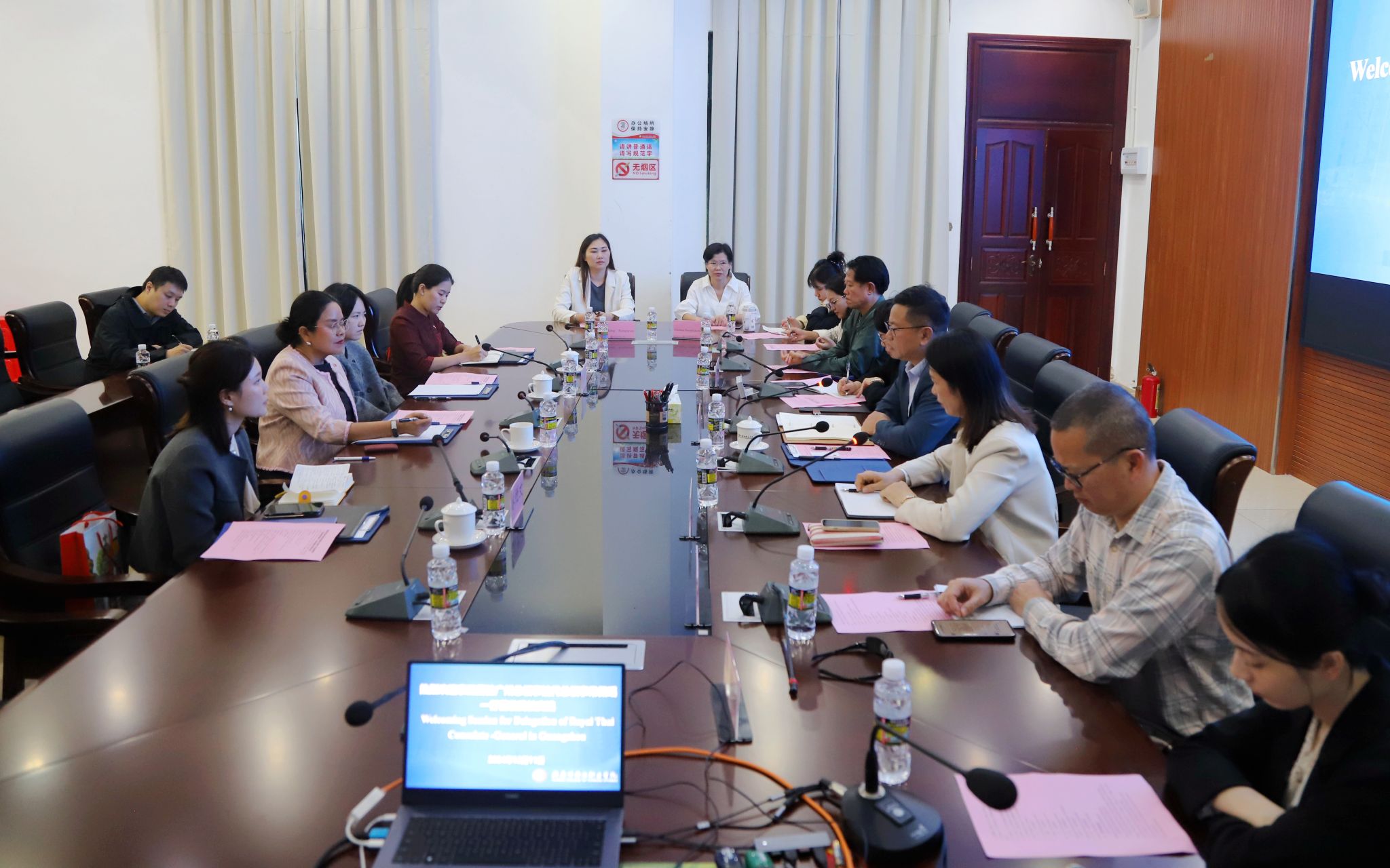 黄学彬在交流中表示,学校一直致力于推动中泰两国的教育和文化交流,经过十年的努力,学校的泰语专业得到蓬勃发展,与泰国多所大学建立合作关系,开展了诸多富有成效的合作项目。他期望通过此次交流,双方能够进一步挖掘合作潜力,共同探索更多合作机遇,携手促进中泰两国教育事业的繁荣发展。常佩瑶女士对beat365的热情接待表示感谢,对beat365泰语专业发展取得的成效给予高度评价。她提到,泰王国驻广州总领事馆非常重视中泰两国的教育文化交流,基于学校在泰语专业建设中的出色表现,计划在学校设立专项奖学金,用以支持泰语专业发展和表彰优秀学生,为中泰两国的教育和文化交流事业作出新的更大贡献。