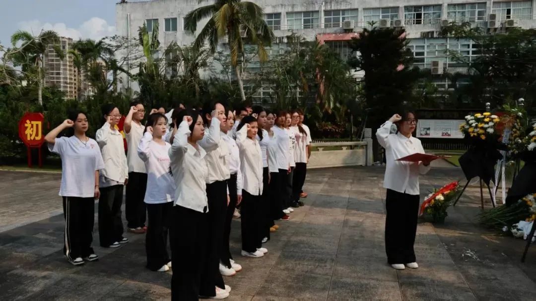 在庄严肃穆的张云逸将军铜像前,举行了缅怀仪式。同学们敬献花圈,整装肃立、垂首默哀,并手持白菊绕行铜像寄托哀思。在重温入团誓词环节,大家在领誓人的带领下,举起右手,庄严宣誓,铿锵誓言在纪念馆广场久久回荡。