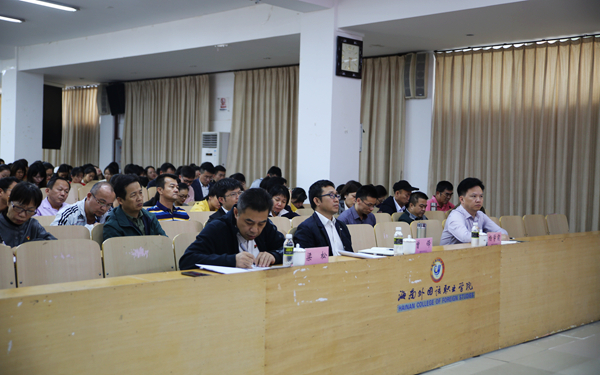 为在“不忘初心、牢记使命”主题教育中学习好、贯彻落实好党的十九届四中全会精神,引导全院广大党员群众把思想和行动统一到全会精神上来,推动我院兴起学习宣传贯彻全会精神的热潮,122日下午,我院在图书馆多功能报告厅举办党的十九届四中全会精神宣讲报告会,邀请海南大学资深教授、省委十九届四中全会宣讲团成员李俊教授来校,为师生作党的十九届四中全会精神解读。学院党委书记曾锋、副院长杨学前、党委委员梁松,以及全体副科级以上干部、师生党员及入党积极分子聆听报告。杨学前副院长主持报告会。