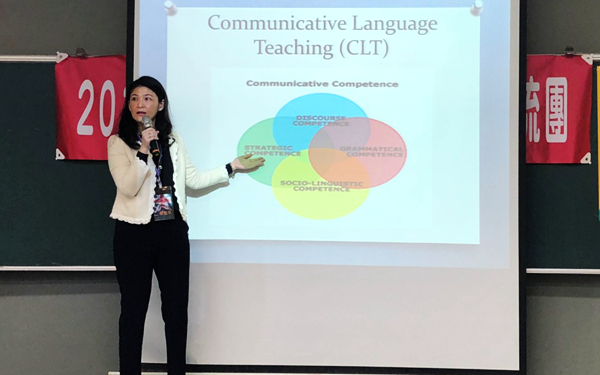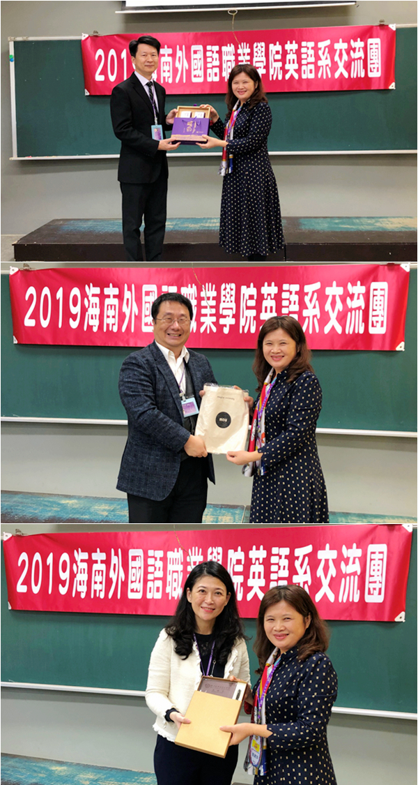 欢迎仪式后,双方代表团进行了题为“翻转英语教学”的座谈。台湾明道大学应用英语学系主任赖意平展示了她在英语课堂教学中的一些具体做法,传授了宝贵的教学经验,并组织学生现场演练课堂活动组织方式,让人受益匪浅。