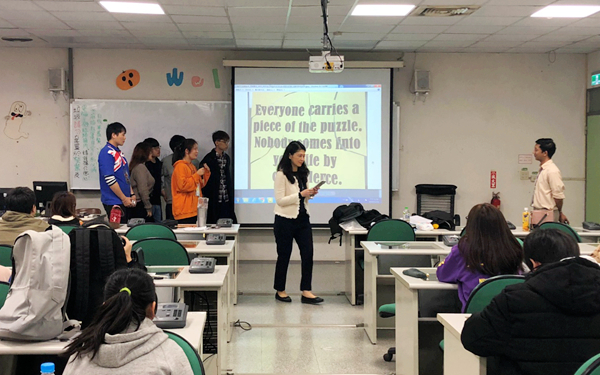 16日下午,我院英语系代表团走进由台湾明道大学应用英语学系主任赖意平主教、菲律宾外教Edmar助教的《进阶英语阅读与写作》和《航空应用英语》课堂,切身体验了外教给中教充当助教的课堂教学方式,并学到了这两门课程生动有趣、高效可行的课堂活动组织方法。