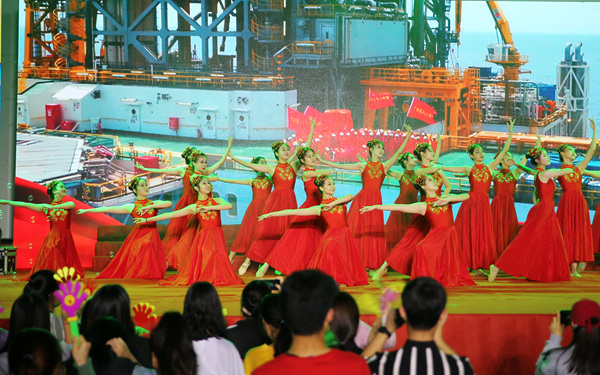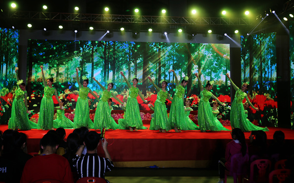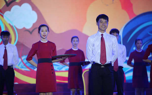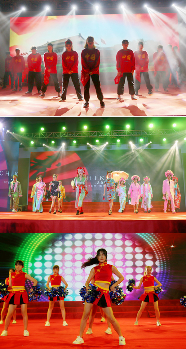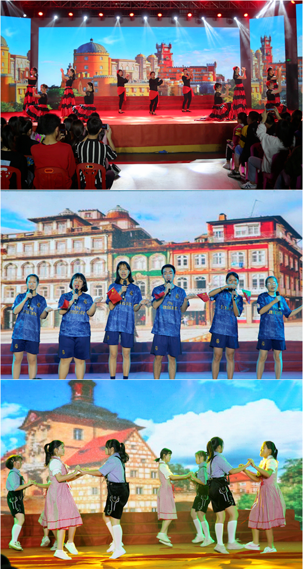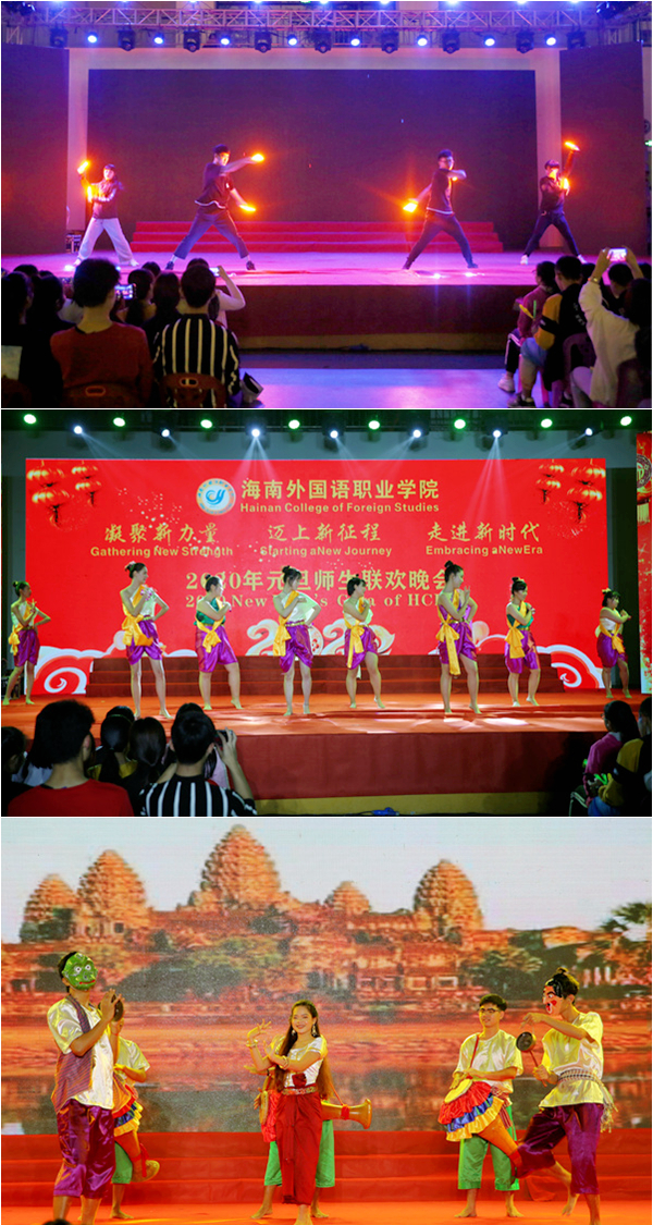 来自国际交流中心的俄罗斯外教带来的独唱节目《Holiday》,整首歌曲曲风轻快,歌声优美动听,在场的观众无一不沉醉其中。学院舞蹈团带来的文昌传统舞蹈《婚庆盅盘》十分有趣,用舞蹈的方式展现了文昌传统文化。我院旅游系带来的情景礼仪节目《建功国际自贸岛,青春礼仪我先行》格外吸睛,同学们在台上展现了其专业领域规范的礼仪动作,既体现了专业特色又值得大家学习。人文艺术系的姚家卓老师独唱英文歌曲《Home》十分动听,师生纷纷喝彩。