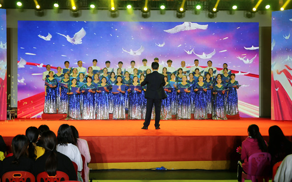 灯光一转,音乐缓缓响起,由学院合唱团带来的合唱节目《节日欢歌》和《天耀中华》以饱满的激情,激励师生团结一心,为中华的明天添光添彩,使整个场馆营造出热闹的节日气氛。shinning啦啦社丶卡带街舞社丶千影协会带来的串烧《逐梦青春》轰动全场,他们用激昂的舞姿展示青春的活力,燃烧学生的青春热血。