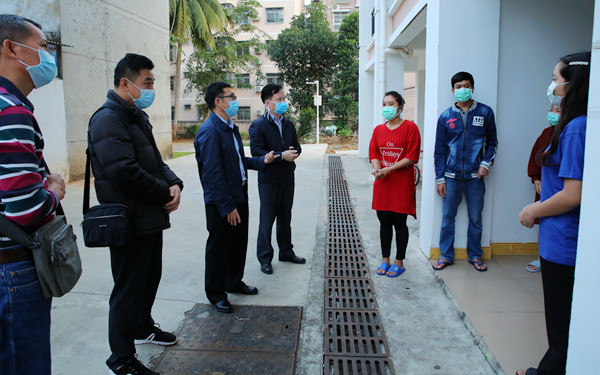 为进一步推动各项疫情防控措施落地、落实、落细,2月1日下午,曾锋书记带队实地走访校园,检查疫情防控各项工作落实情况,并看望了假期留校的中外学生,慰问坚守一线的工作人员和后勤保卫人员。杨学前副院长、党委委员梁松和有关部门、系部主要负责人一同检查。