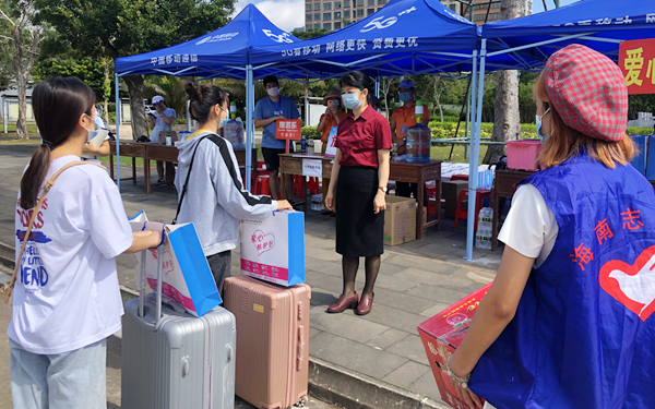 很多同学都是一大早七点多从家里出发乘坐第一趟来文昌的动车返校,当在动车站和到校后感受到老师还有志愿者们的热情接待和服务时,更加倍觉感动。