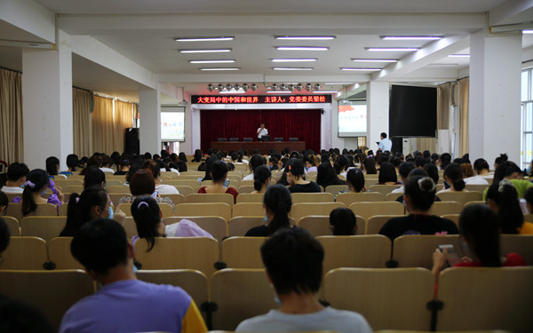 69日下午,学院党委委员、党委办公室(宣传统战部)主任(部长)梁松在图书馆多功能报告厅为英语系学生讲授一堂生动的形势与政策课。他以《大变局中的中国与世界》为题,结合我国当下的形势,以通俗易懂的话语和不同层次的视角,回顾了人类社会历史发展的历程,带领我们重新领略了中国之发展。