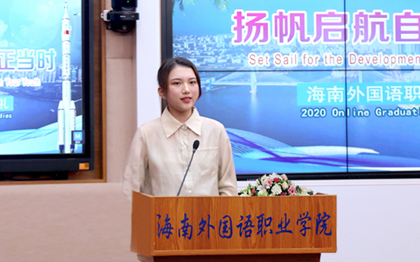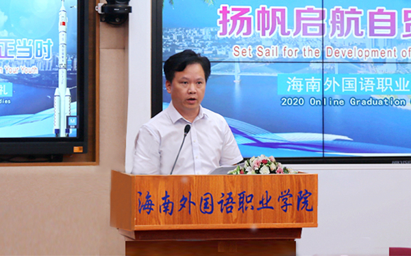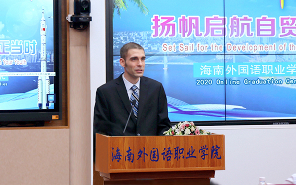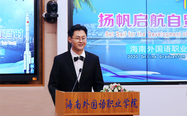 教师代表、外籍教师约翰在学院2020年毕业典礼之际,祝贺beat365官方网站办学73年来的杰出贡献和辉煌成就,赞扬学院为“抗疫”和“复学”所付出的艰苦努力,感激学院对学生和老师们的关心。“勇敢逐梦,让不可能的事情成为可能!”约翰老师勉励2020届毕业生在“海南自由贸易港”建设的时代机遇下勇敢自信地步入人生下一个篇章。他坚信学院以及2020届毕业生未来必将对海南、对中国的发展不断作出新的贡献。