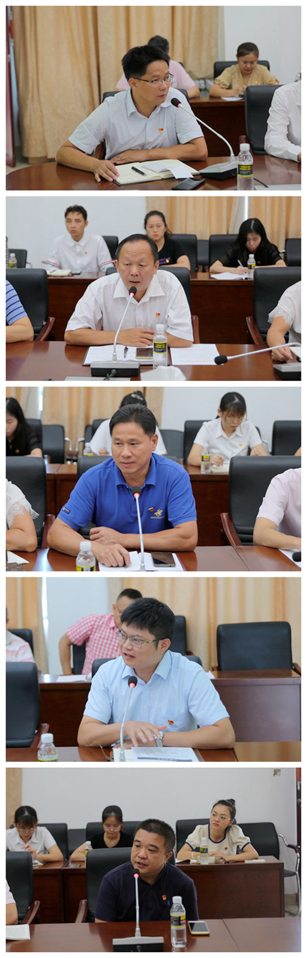 随后,英语系党总支部副书记吴清晖、旅游系教师党员冼洁丹、西语系学生党员田芸菡先后作交流发言。