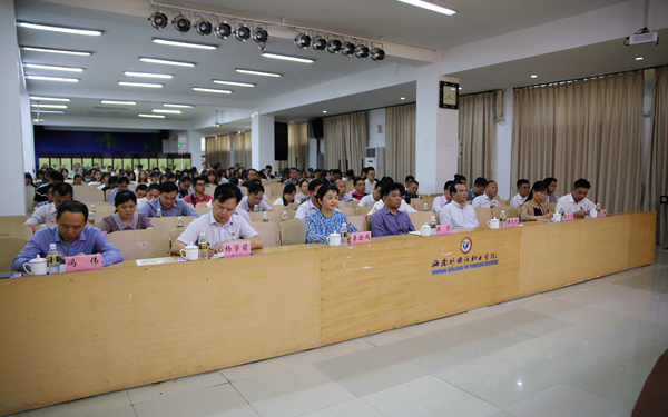 在全省上下深入宣讲贯彻党的十九届五中全会精神,全面推进海南自贸港建设之际,11月19日下午,省委宣讲团成员、省人大常委会党组副书记、副主任许俊莅临我院宣讲党的十九届五中全会精神。省人大常委会研究室主任陈彤,文昌市人大常委会副主任黄良锐等同志陪同。宣讲会由我院院长李渝凤教授主持。全体在校的学院领导出席宣讲会,全体副科级以上干部、党务工作者、思政课教师、师生党员、入党积极分子聆听了宣讲。