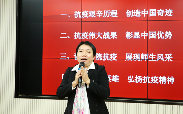 讲座尾声,旅游系党总支部书记林明霞在总结讲话中,号召同学们致敬抗疫英雄,弘扬伟大抗疫精神,将中华民族在本次突发重大疫情中迸发出的英雄精神铭记在心里、落实在行动中。