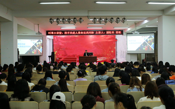 为弘扬抗疫精神,培养我院学生的使命感与担当意识,12月24日下午,我院时事大讲堂在多功能报告厅开讲,副院长梁松以《携手共建人类命运共同体》为题,向英语系学生讲授了一堂意义深刻的形势与政策课。