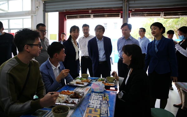 在食堂,黎岳南副厅长、邢彩虹副市长与用餐的师生亲切交谈,询问他们用餐感受、菜价菜品是否满意等;同时,还向食堂负责人强调了食品安全的重要性,要求必须把好食品安全关,保障师生饮食安全。在检查疫情防控措施落实工作时,黎岳南副厅长要求,学院要继续严格按照上级要求,做好校园常态化疫情防控,把师生身体健康和生命安全放在第一位,将疫情防控各项工作落实落细落地,稳定有序开展春季学期开学工作。