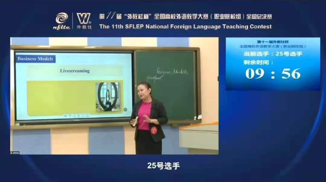 授课比赛中,选手表现出扎实的语言综合运用能力、较强的课堂教学能力和较高的教学理论水平,在教学中充分挖掘思政资源,将价值观引导与对学生的知识传授和能力培养结合起来;每位选手背后的技术团队娴熟运用在线教育技术,保证了授课直播的顺利进行,充分展现了职业外语教学的先进水平。