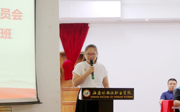 新党员代表、国际商务系教师谢婧婧作表态发言,她表示热血先辈的奋斗史和抗争史,激励自己,对党的了解越来越全面,愈发坚定自己意愿,今后会更加积极投身于党的伟大事业,党员同志作为先锋队,理应不忘初心、牢记使命。