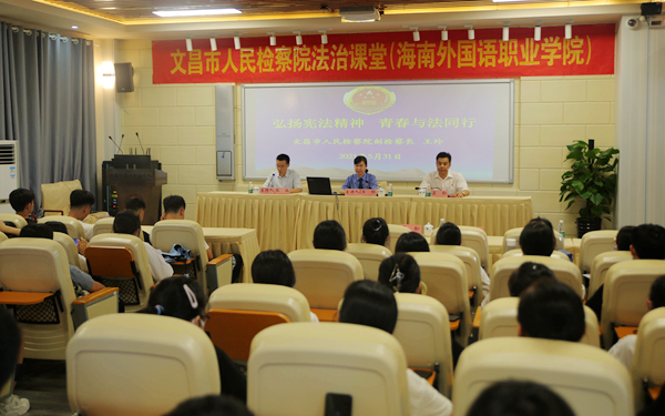 为增强广大学生法治意识,教育引导学生知法、懂法、守法、用法,推动法治校园建设,5月31日下午,我院邀请学院法治副校长、文昌市人民检察院副检察长王玲到校作《弘扬宪法精神,青春与法同行》法治教育专题讲座。学院党委委员、副院长梁松出席讲座。各系部中职阶段的学生代表近200人聆听讲座。讲座由学院办公室副主任张政主持。