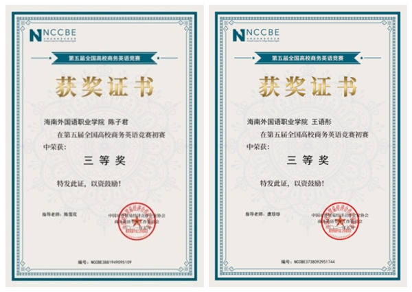 2019商务英语(外贸1)班李杨城获得决赛三等奖的好成绩。此外,在初赛中,李杨城和肖柳(2019商务英语(跨境电商))获二等奖,罗斯园(2019商务英语(外贸2))、王珠(2019商务英语(外贸2))、郑紫虹(2017商务英语(501))、王语彤(2019商务英语(跨境电商))陈子君(2019商务英语(外贸2))和樊沙沙(2019商务英语(外贸1))获三等奖,为学校赢得了荣誉。我院选手获得优异成绩充分体现了我院学生较强的英语应用能力和较好的商务素养。
