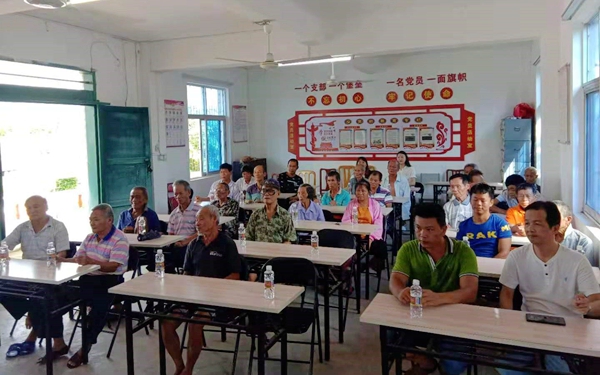 慰问组一行还在祖坡村村委会召开座谈会。会上,梁松副院长面向50多户脱贫户、困难户等群众代表,围绕深入学习贯彻习近平总书记在庆祝中国共产党成立100周年大会上的重要讲话精神,结合近年来全国脱贫攻坚取得的历史性成就和祖坡村脱贫攻坚取得的胜利,上了一堂党课。他指出,习近平总书记在庆祝建党一百周年大会上向全世界庄严宣告,在党的领导和全体人民共同努力下,我们实现了第一个百年奋斗目标,在中华大地上全面建成了小康社会,历史性地解决了绝对贫困问题,正在意气风发向着全面建成社会主义现代化强国的第二个百年奋斗目标迈进,这是载入史册的伟大成就,充分体现了党始终坚持以人民为中心,不忘初心,牢记使命,不断带领中华民族日益走向繁荣富强,不断带领中国人民日益过上更加美好的生活。他希望学院驻村第一书记继续带领村委会全体党员群众,持续开展好党史学习教育;党员干部要持之以恒的贯彻落实全心全意为人民服务的宗旨,宣传落实好党和政府有关巩固拓展脱贫攻坚成果和乡村振兴的政策;要因地制宜开展好村庄基础设施、人居环境、产业发展等工作,多为群众办实事,不断提升群众幸福感,深入推动祖坡村乡村振兴工作发展。脱贫户要感党恩、跟党走,坚决拥护党的领导,用双手创造更加美好的生活。