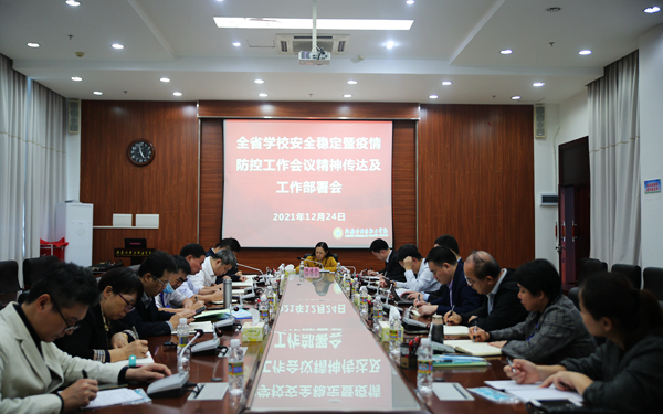 12月24日下午,海南省教育厅召开全省学校安全稳定暨疫情防控工作视频会议。会后,beat365官方网站第一时间在综合楼七楼会议室(一)召开安全稳定暨疫情防控工作部署会。党委书记佴建乔出席会议并讲话。党委副书记、院长杨学前,党委副书记黄丽芹出席会议。会议由党委委员、副院长梁松主持。