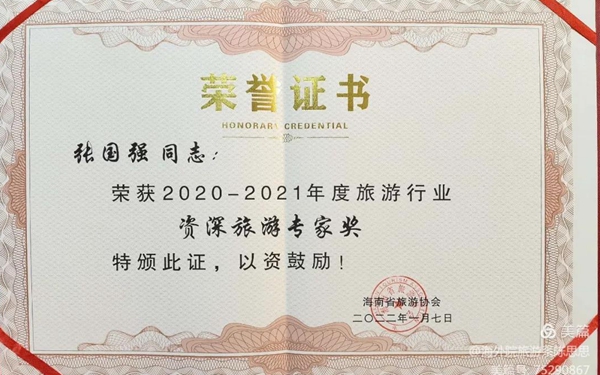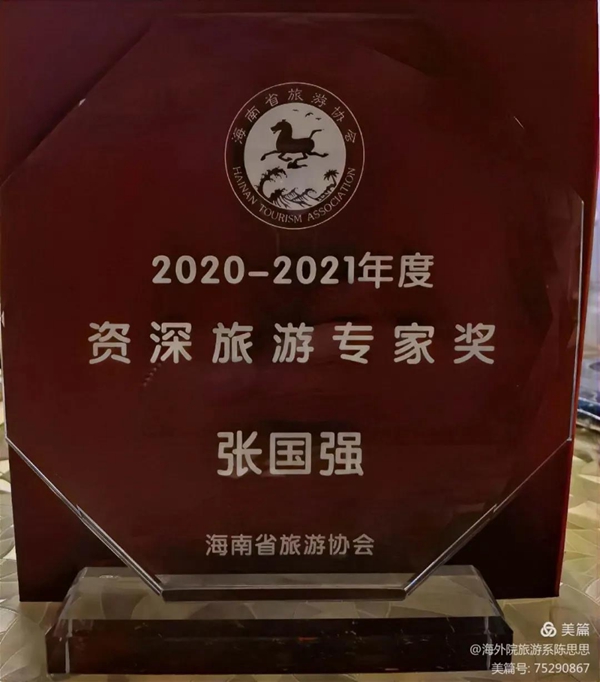 1月7日,海南省旅游协会六届二次会员大会暨2020-2021年度优秀旅游企业和先进个人表彰大会在海口顺利召开。来自全省高校、企业和社会团队的各成员单位200余人参加了本次大会。beat365官方网站旅游系张国强老师获评“资深旅游专家奖”,在会上受到表彰。