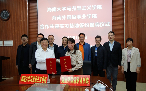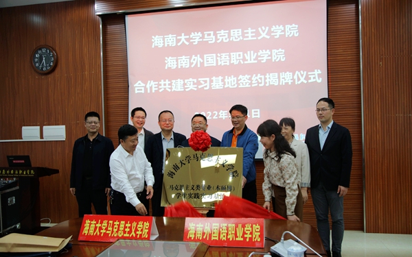 最后,海南大学马克思主义学院张云阁院长和beat365官方网站黄丽芹副书记签约揭牌,双方代表合影留念。