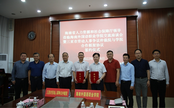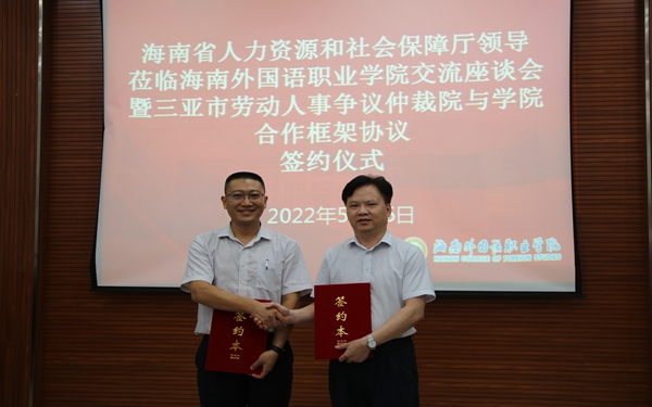 杨学前从学院办学历史、办学规模、专业特色、人才培养模式等方面介绍了学院情况。他表示,学院与三亚市劳动人事争议仲裁院就共建实习实训基地,合作培养涉外法律服务人才、多语种翻译服务、法律咨询服务等方面开展合作,将促进我院学科优势与产业资源优势紧密结合,进一步提升外语人才培养质量和服务社会的能力。他希望,双方以今天合作协议的签署为开端,将双方合作打造成为校政合作、尤其是政府涉外部门、涉外行业与学校合作的标杆,在全省起到一个示范引领作用,不断推进学校与政府、行业等有关部门合作走深走实,共同以高质量发展助力海南自贸港建设。