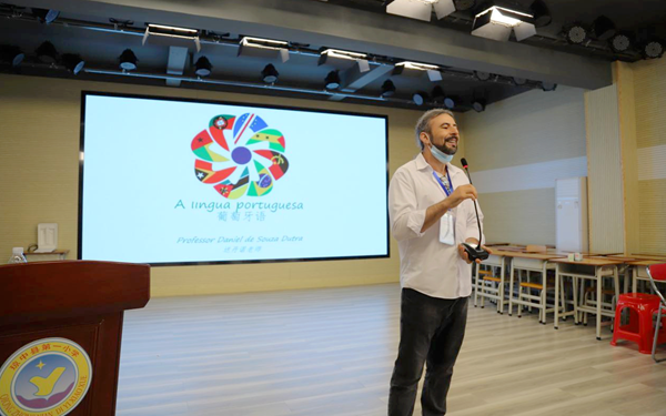 课上,来自美国、巴西、泰国、日本、泰国、埃及、越南、印尼、柬埔寨、缅甸等国家的外教分别上台介绍自己国家的语言文化。来自美国的外教John通过单词游戏激发学生们学习英语的热情,来自巴西的外教Daniel通过巴西足球与琼中女足的对比引入葡萄牙语,来自泰国的外教Nice通过现场体验泰国传统民族服饰激起学生学习的兴趣……外教们“各显神通”,在场学生的读书声、掌声此起彼伏。讲座结束后,外教们还给学生们进行了一对一的外语入门辅导。