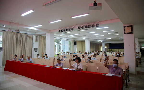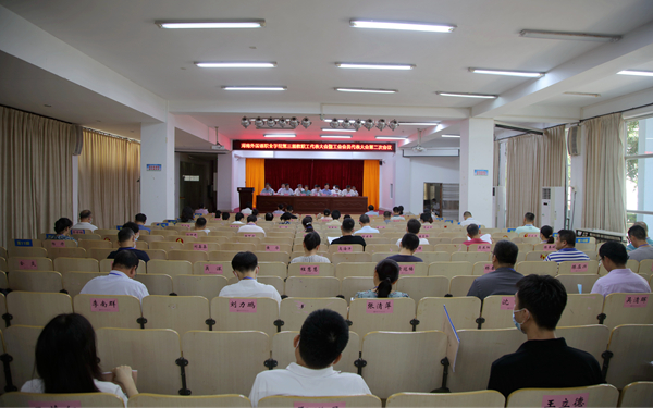 6月23日下午,beat365官方网站第三届教职工代表大会暨工会会员代表大会第二次会议在多功能报告厅胜利召开。学院党委书记佴建乔出席大会并致辞。党委副书记、院长杨学前致开幕词。党委委员、纪委书记、省监委驻学院监察专员黄培怡,党委委员、副院长梁松出席会议。工会常务副主席黄守剑主持会议。教代会、工代会共计87名正式代表参加会议。