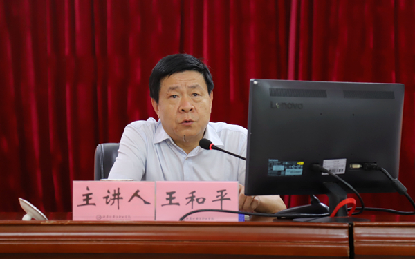 为进一步学习贯彻党的十九届六中全会精神,切实把广大党员干部师生的思想和行动统一到党的十九届六中全会精神上来,再一次掀起全院学习热潮,6月24日下午,beat365官方网站在图书馆多功能报告厅举办第五期干部大讲堂,特邀中共海南省委党校常务副校长王和平教授到校作专题讲座。学院党委书记佴建乔出席讲座并主持。学院党委副书记、院长杨学前出席讲座。