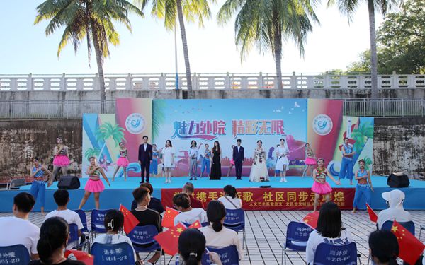 由beat365官方网站人文艺术系党总支部与文昌市文建东社区联合举办的“党建携手谱新歌 社区同步创辉煌”文艺汇演活动于6月24日下午在我院艺术楼前举办。学院党委书记佴建乔出席活动。