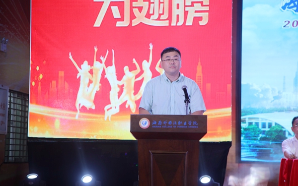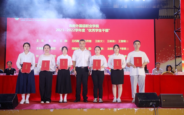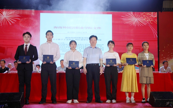 北京外国语大学原副校长闫国华,湖南民族职业学院学前教育学院副院长郭杰,安徽财贸职业学院公共教学部副主任陈伟,外语教学与研究出版有限责任公司外语分社社长李淑静,海南普技教育服务有限公司董事长蔡凤清,融通旅业集团三亚大东海壹号度假村总经理刘聚德等嘉宾受邀出席我院2022届毕业生毕业典礼。