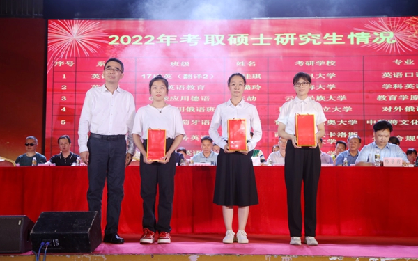 杨学前以“以外语为翅膀,与世界零距离”为题深情寄语毕业生。他首先从全院师生共同抗击疫情、迎接新中国成立70周年、共庆中国共产党百年华诞,回顾了2022届毕业生追逐梦想、努力奋斗的青春记忆;以“志存高远,以梦想壮情怀”“脚踏实地,以实干扛担当”“超越自我,以学习强底气”作为临别赠言,勉励广大毕业生坚定理想信念,志存高远,脚踏实地,为海南自贸港建设添砖加瓦,把个人的理想追求融入党和国家事业之中,在时代的大潮中逐浪前行,在海南自由贸易港建设的生动实践中放飞青春梦想、书写人生华章!