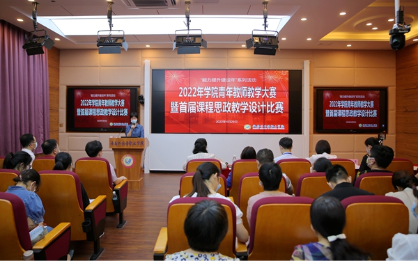 图为2022年学院青年教师教学大赛暨首届课程思政教学设计比赛现场