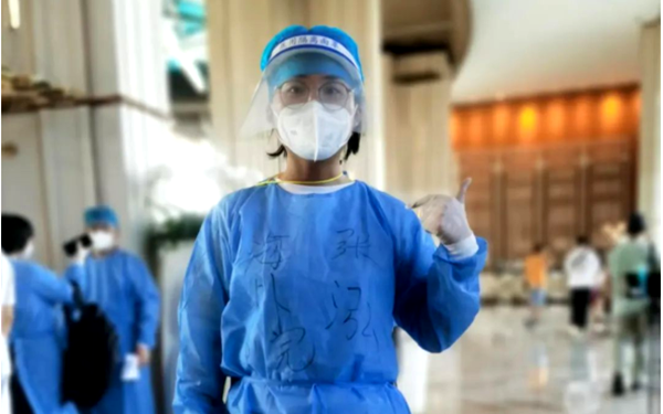 张泓在收到学院党委号召广大青年党员干部参加志愿队伍支援三亚抗疫一线的紧急通知后,第一时间报名加入到志愿服务队,奔赴三亚开展志愿服务工作。她负责滞留三亚湾旅客的转运工作,每天连轴转地将每个“八万分之一”安全送到机场,为全省疫情防控工作贡献绵薄之力。
