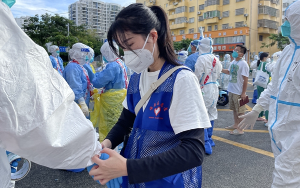 云潇博在三亚市红郊社区的志愿服务工作中,充分发扬听指挥、敢担当的工作作风,认真完成社区居民核酸检测、隔离点值班值守、生活物资分配等工作,得到了居委会干部的肯定。