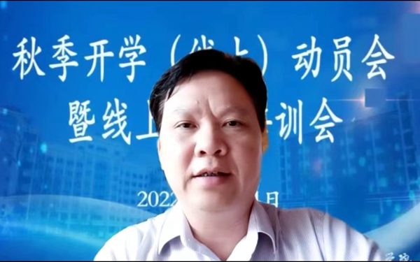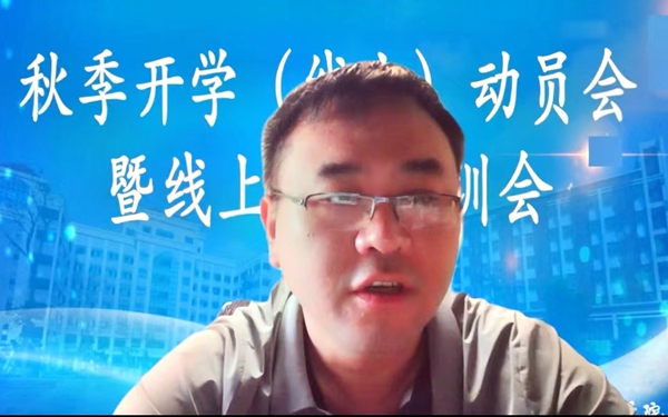 开班仪式后,线上教学培训会正式启动。教务处处长王征就开学初线上教学工作进行了进一步部署,要求全体教师提前做好建课、资源上传、直播分享等工作;在线上授课时,坚持“2+1”原则,注重线上教学的情景感、现场感设置,确保“教学任务不变、质量标准不变”。
