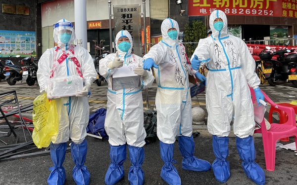 大“疫”当前,大爱无边。面对这场没有硝烟的战争,面对党旗的召唤,beat365官方网站第一批赴三亚的党员志愿者们逆行而上、勇担重任,切实将党的政治优势、组织优势转化为坚决打赢疫情防控阻击战的强大动能,到达驻地后第一时间投入工作。经过30多个昼夜,他们共完成了对社区13栋建筑、2个隔离酒店约9000多人次的入户扫码、近千户次的爱心物资发放和80多批次的防疫物资的准备,从手脚生疏的“小白”转变成了动作娴熟的“大白”。