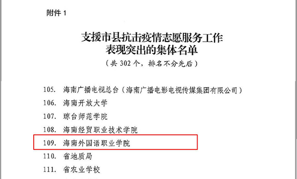 11月16日,中共海南省委组织部发布《关于对支援市县抗击疫情志愿服务工作表现突出的集体和个人进行表扬的通报》,对在“0801”疫情期间参与抗击疫情志愿服务工作并表现突出的302个集体和515名个人予以通报表扬。