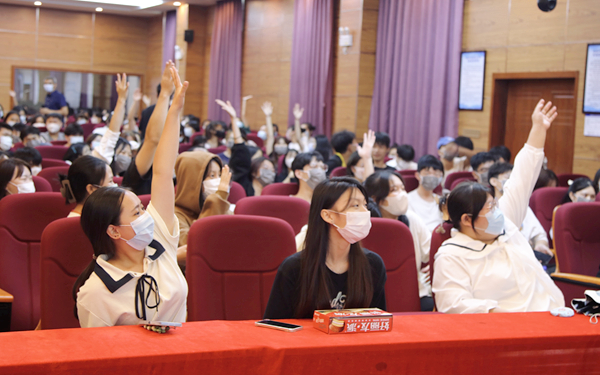 讲座上,郑鈺医生结合自身工作和科研经历,向同学们介绍了艾滋病的相关危害和预防措施,让同学们正确认识了当前艾滋病的发展形势、艾滋病的传播途径和具体预防方法等。随后,郑鈺医生通过大量的数据、详实的案例,结合日常生活实际,从艾滋病毒传播途径、艾滋病毒传染后阻断这二个方面对艾滋病进行了详细讲述,并对世界艾滋病日进行了宣传,呼吁同学们要认真了解并重视艾滋病,学习掌握艾滋病相关知识、保护好自己的同时,更要积极倡导身边人加强防范意识,尊重、关爱艾滋病患者。讲座过程中,她还与现场的同学们进行问答互动,赠送小礼品,调动同学们的参与积极性。